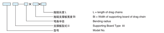 拖链型号TL45,支撑板Ⅲ型,弯曲半径R=90,拖链长度L=5500